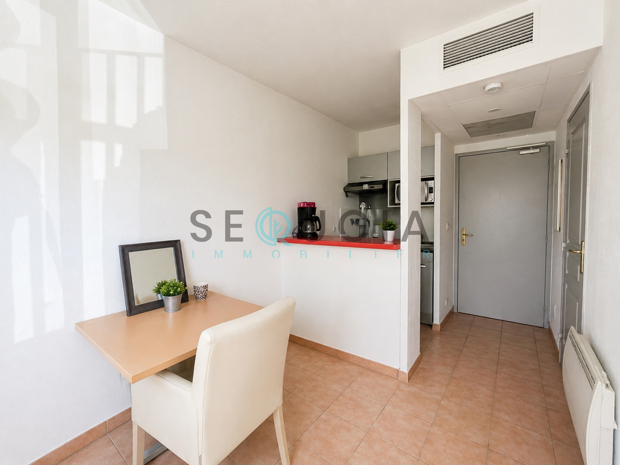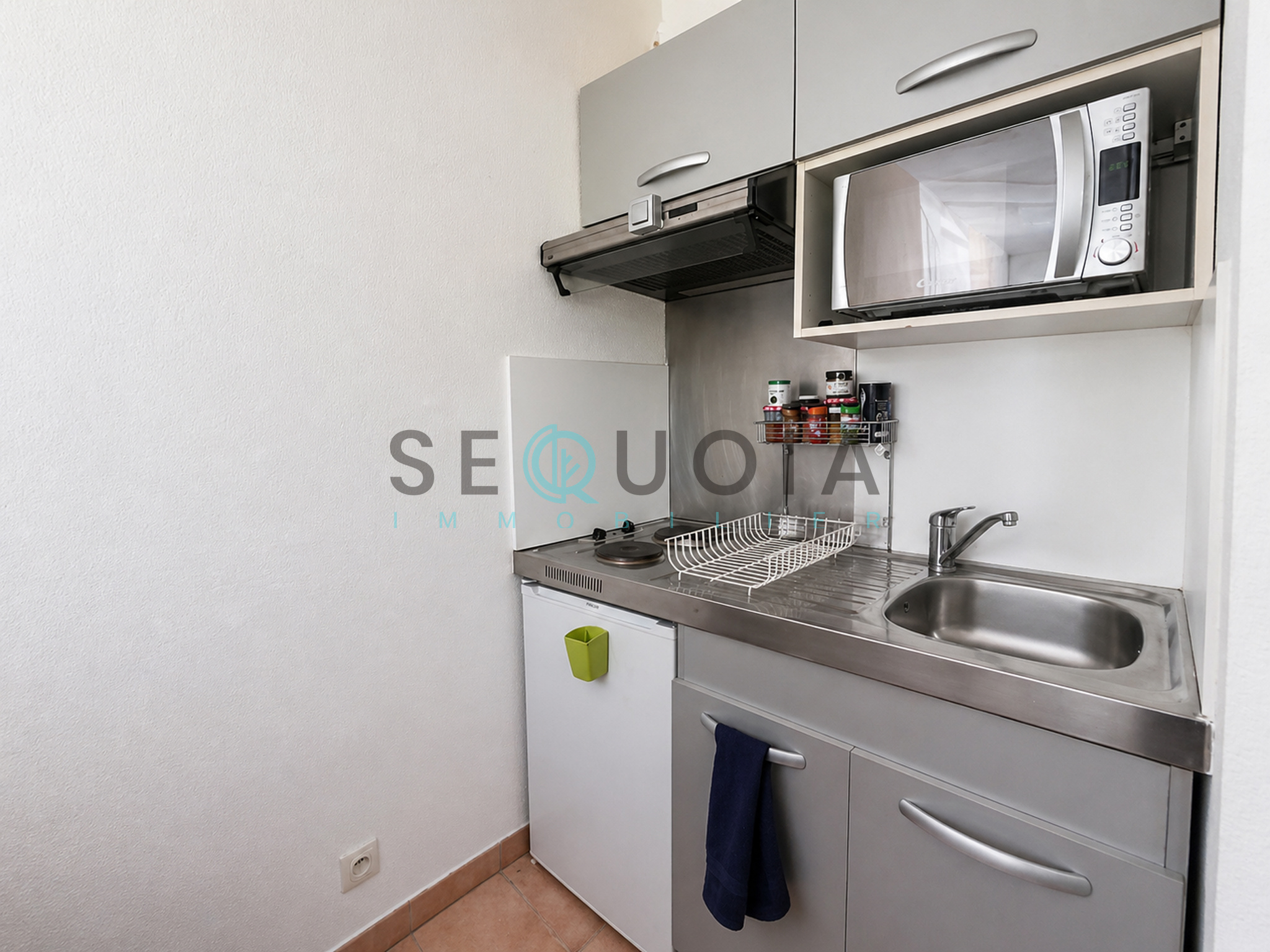 Il se compose d’une pièce de vie lumineuse ouvrant sur un balcon, d’un coin kitchenette équipé, ainsi que d’une salle de bains avec WC.