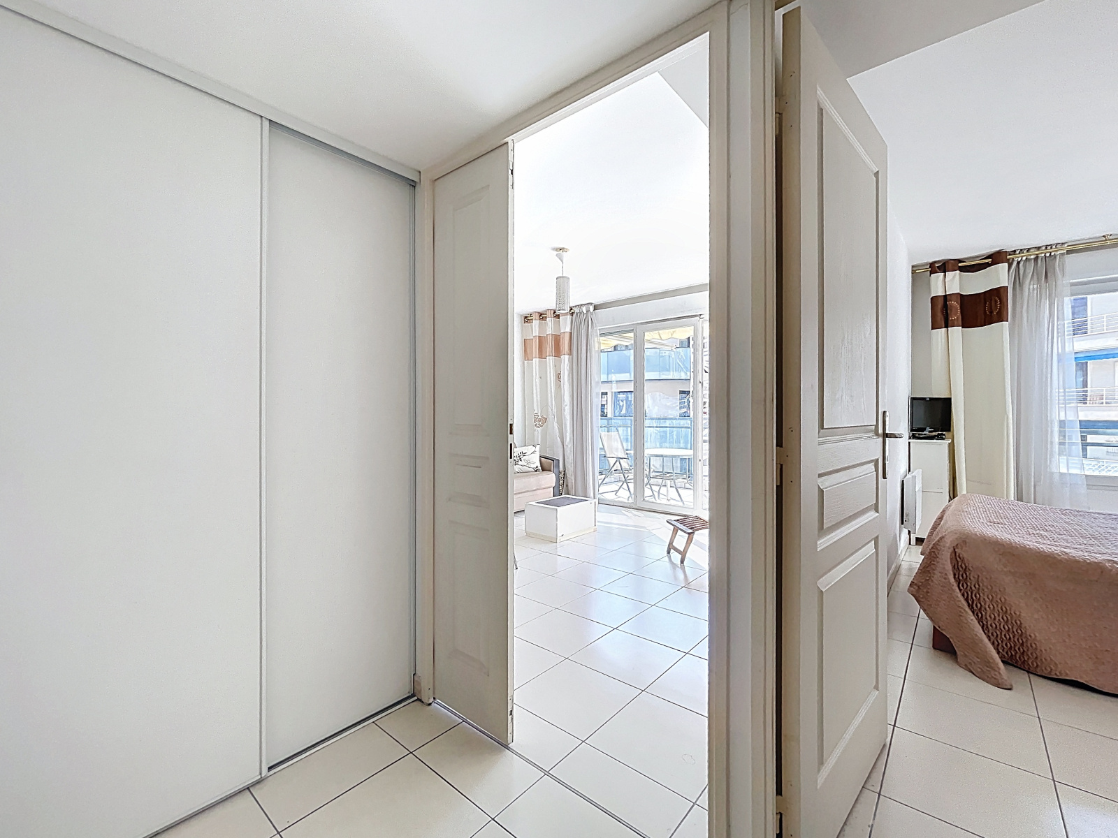 L’appartement se compose d’une entrée avec rangements, d’un spacieux séjour avec cuisine ouverte entièrement équipée, réalisée avec des matériaux de grande qualité. Il comprend également une chambre avec placard intégré, une salle de bain, ainsi que des WC séparés.