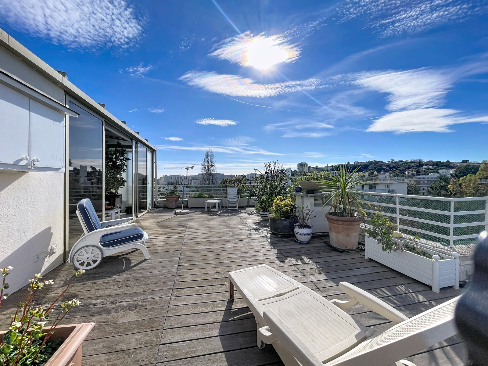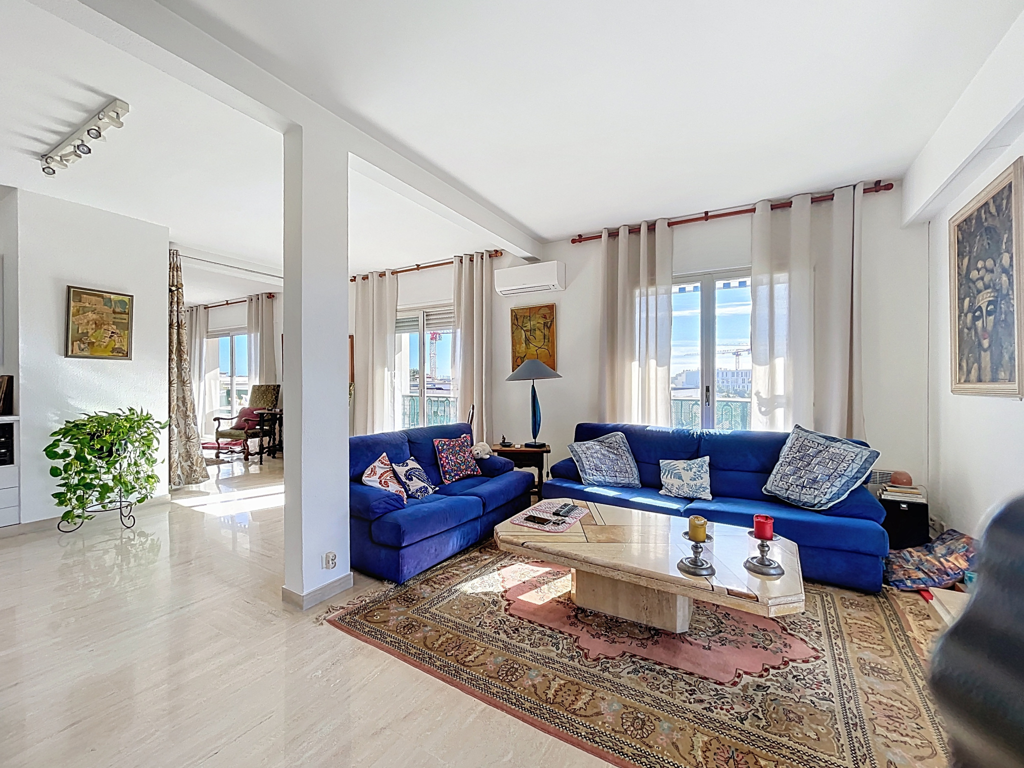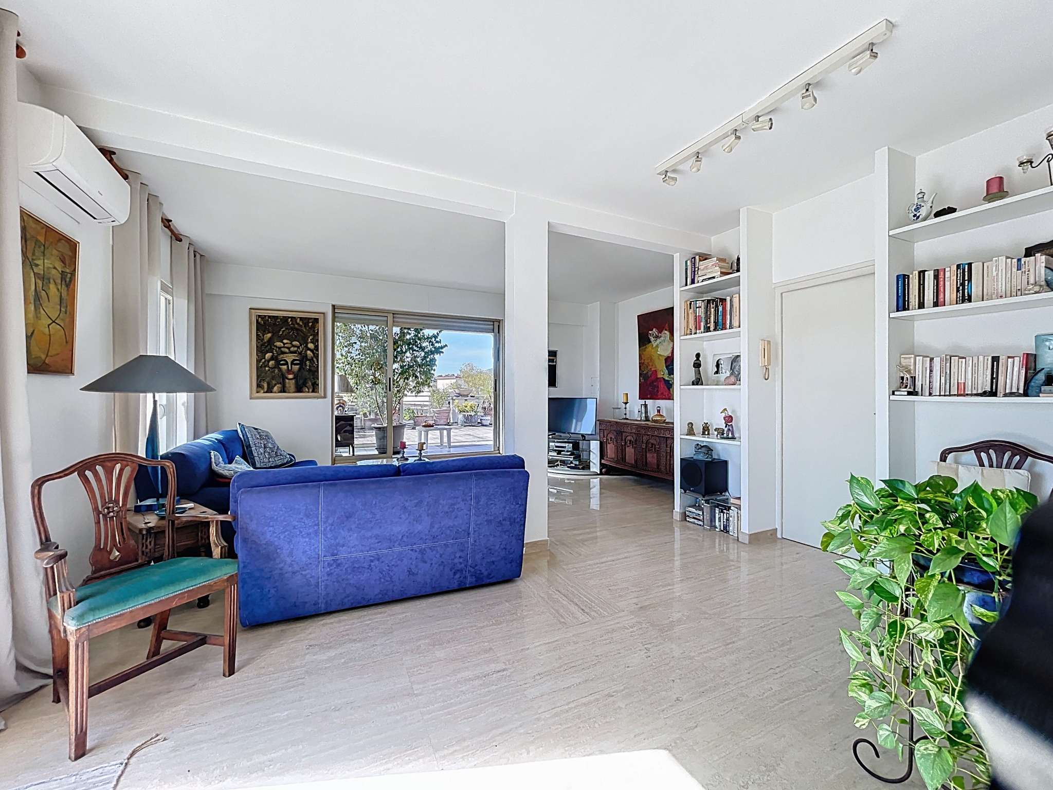 Co-exclusivité. Rare sur le marché. Situé dans une petite copropriété avec ascenseur, proche des commerces et du centre-ville d'Antibes, appartement traversant de 3/4 pièces d'une superficie de 154 m2 en 4ème et dernier étage avec balcons et terrasses sur 3 cotés, dont la principale et magnifique terrasse de 65 m2 avec vue montagnes et vue latérale sur la mer.