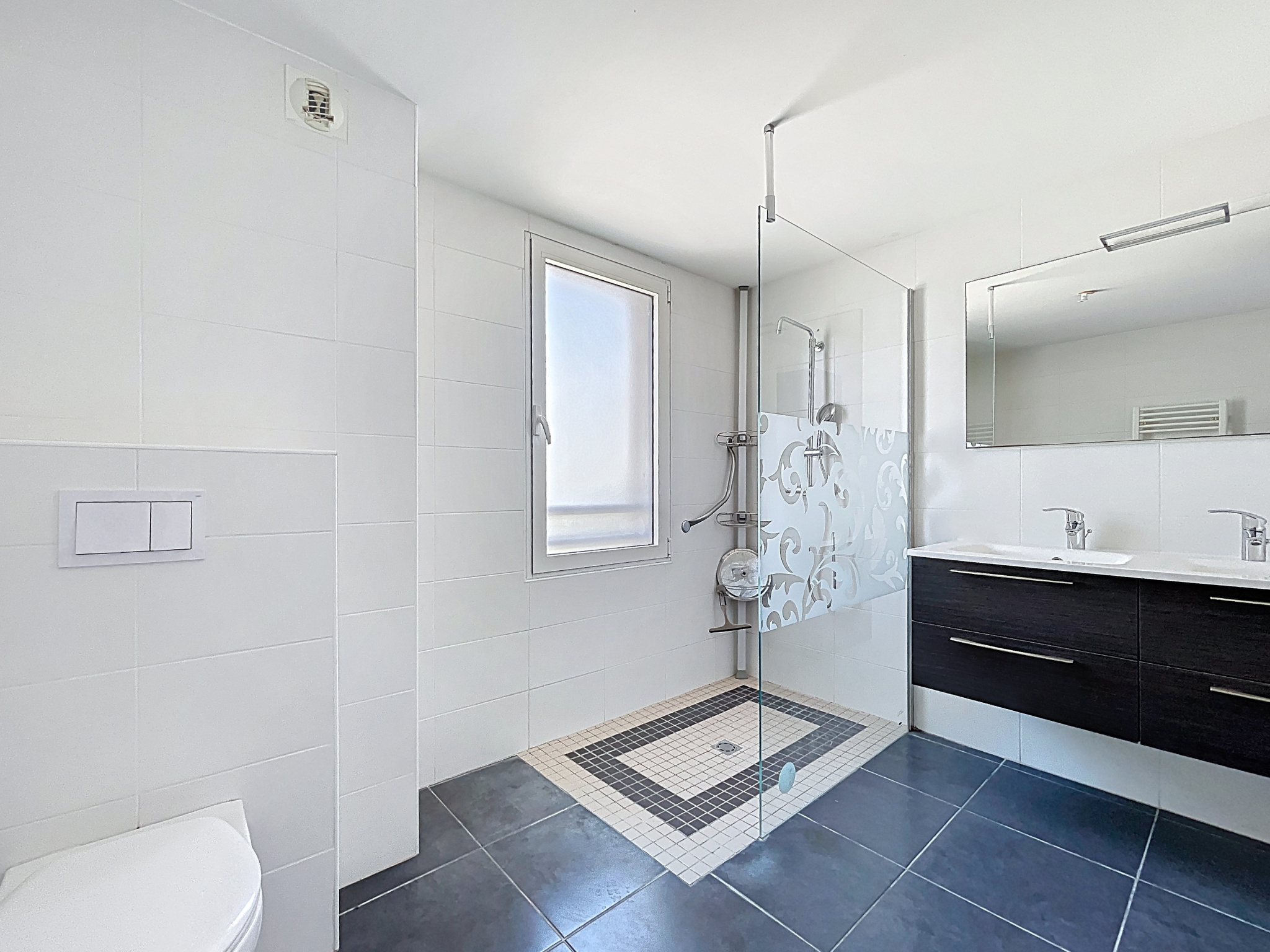 L’appartement se compose d’une entrée avec placards de rangement intégrés, d’une cuisine américaine entièrement équipée, de deux chambres avec rangements, d’une grande salle d’eau avec douche à l’italienne ainsi que d’un WC indépendant.