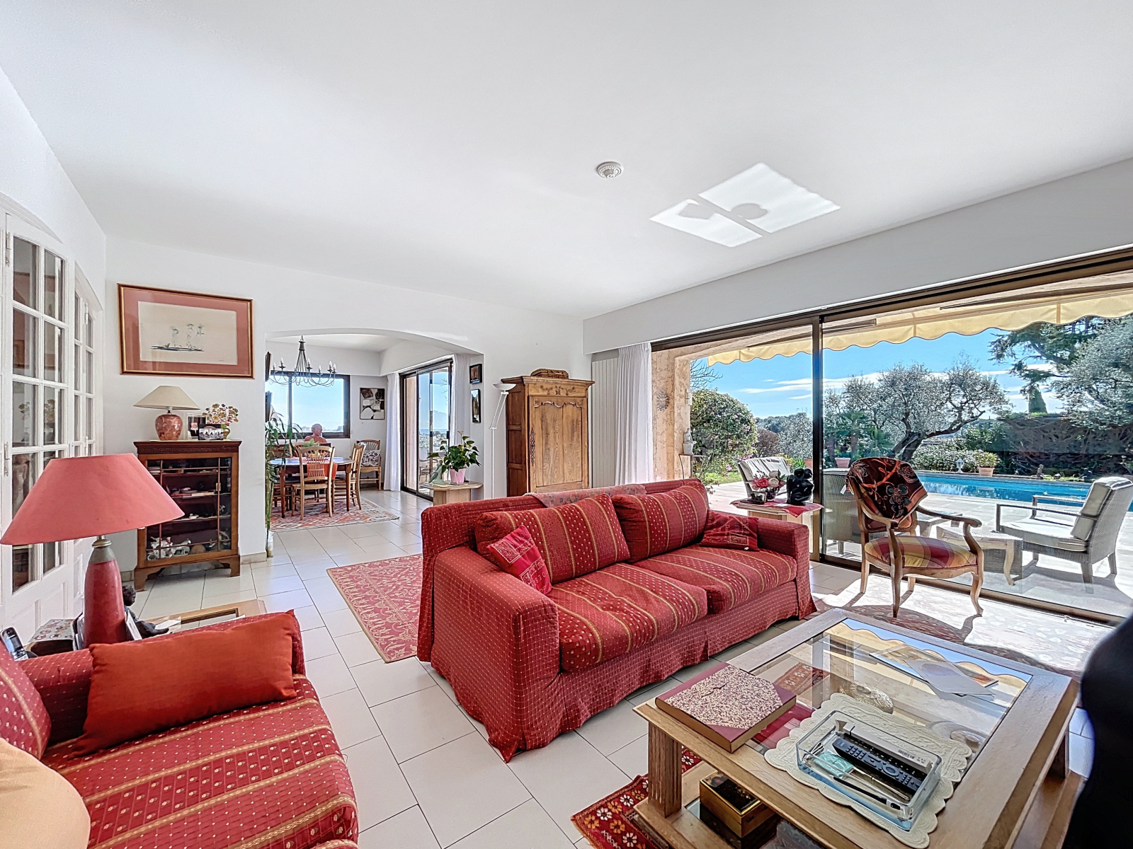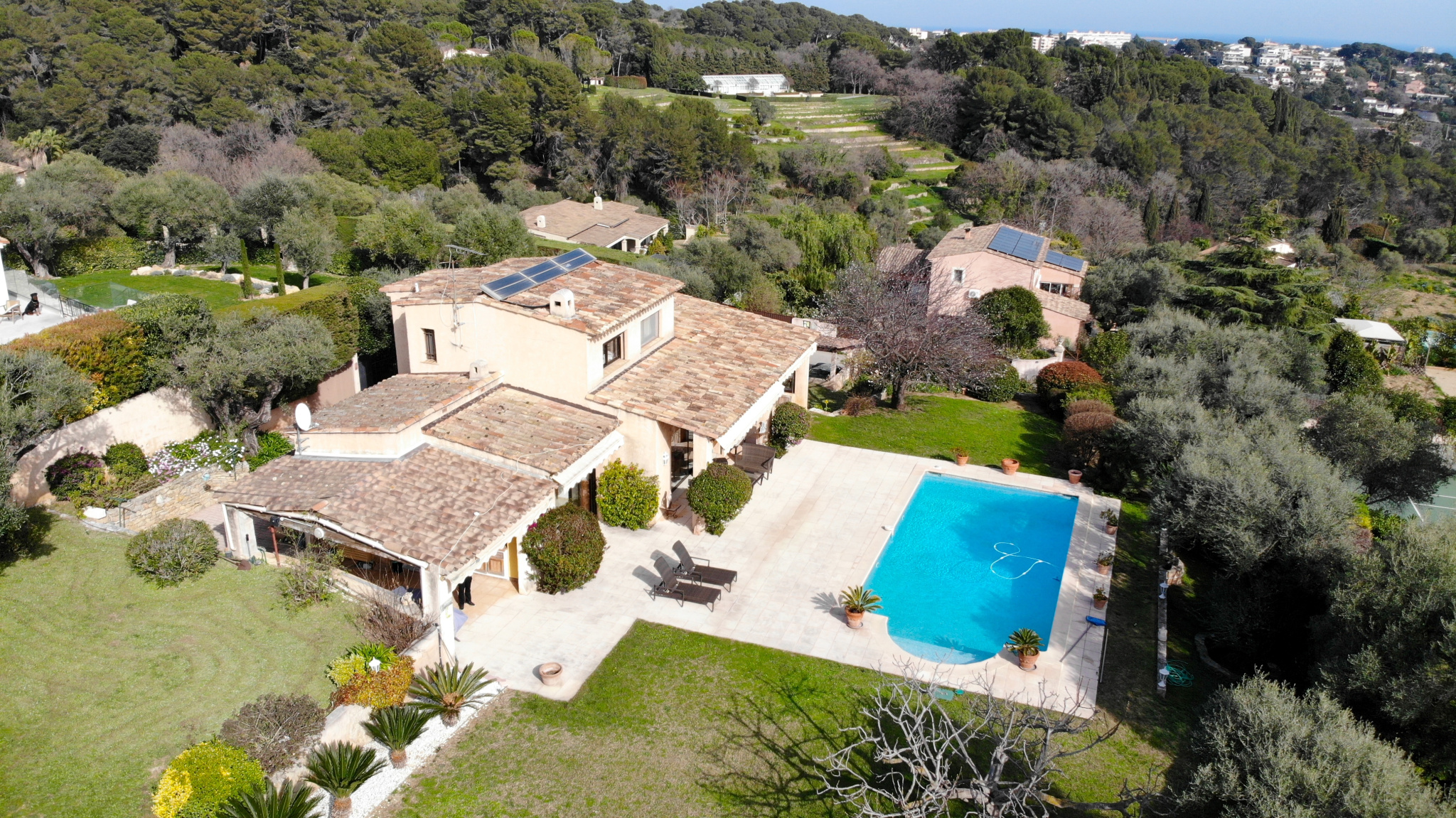 Sur les hauteurs d’Antibes, au fond d’une impasse, cette villa bénéficie d’un environnement exceptionnel : calme absolu, position dominante et très jolie vue dégagée jusqu’à la mer. Son exposition plein sud lui confère une luminosité remarquable du matin au soir.