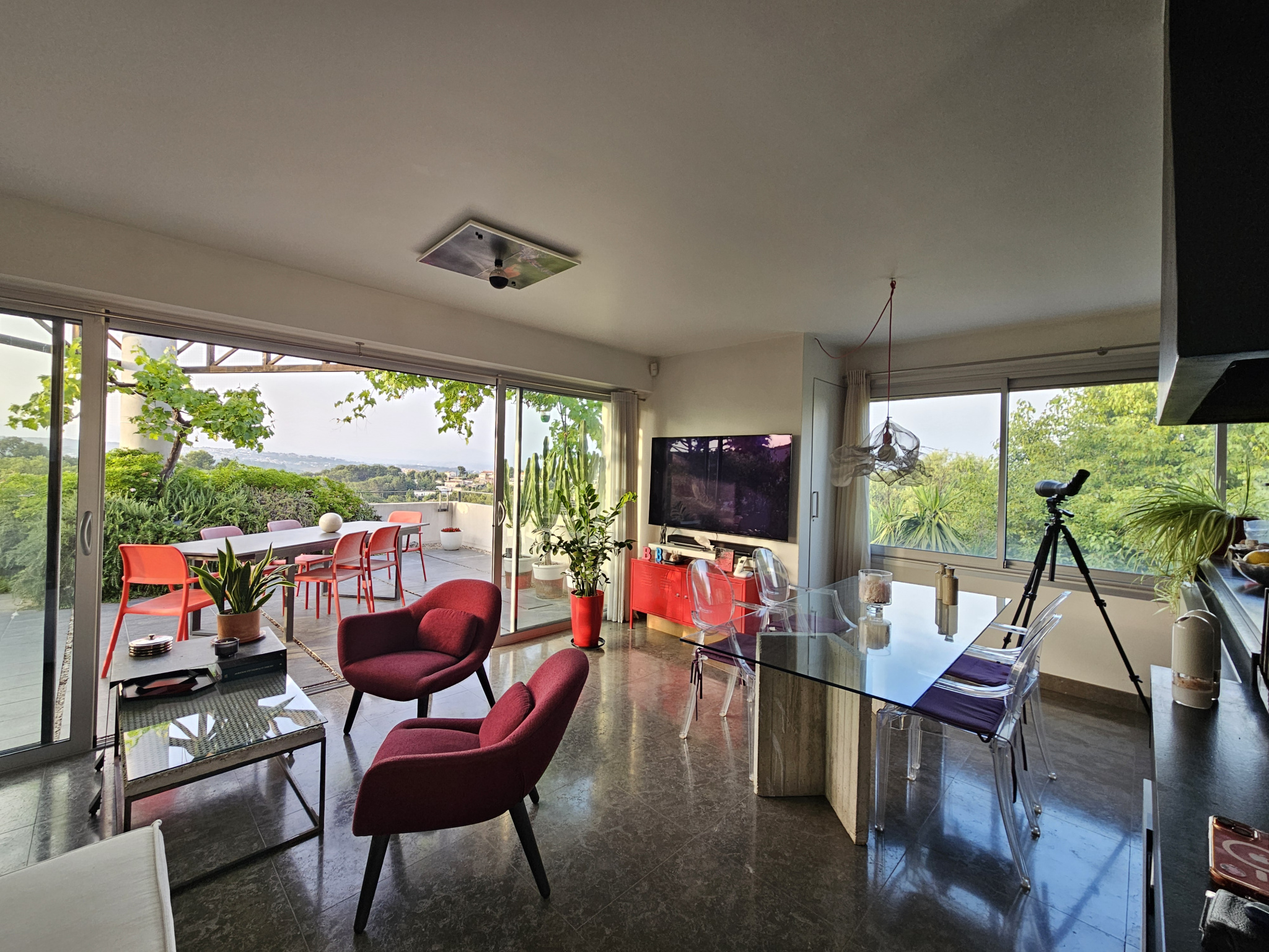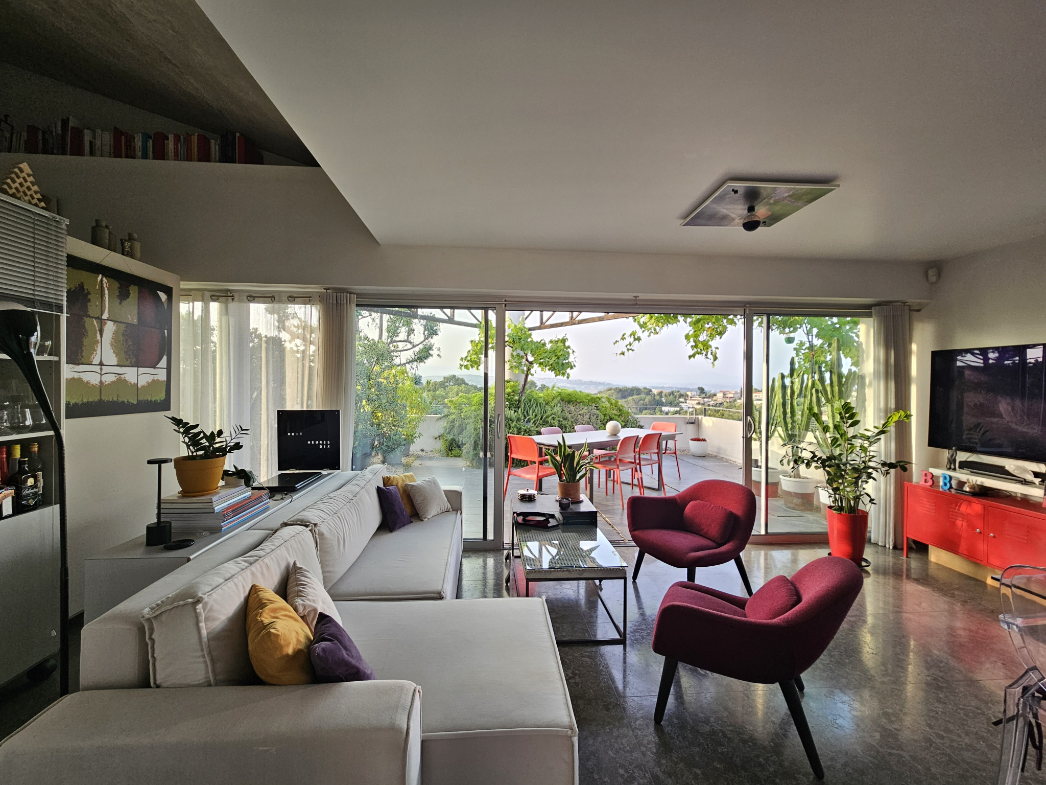 Appartement à l’étage (environ 120 m² + extérieurs) indépendant, avec deux terrasses et vue mer, idéal pour accueillir la famille, louer à l’année ou en saisonnier :