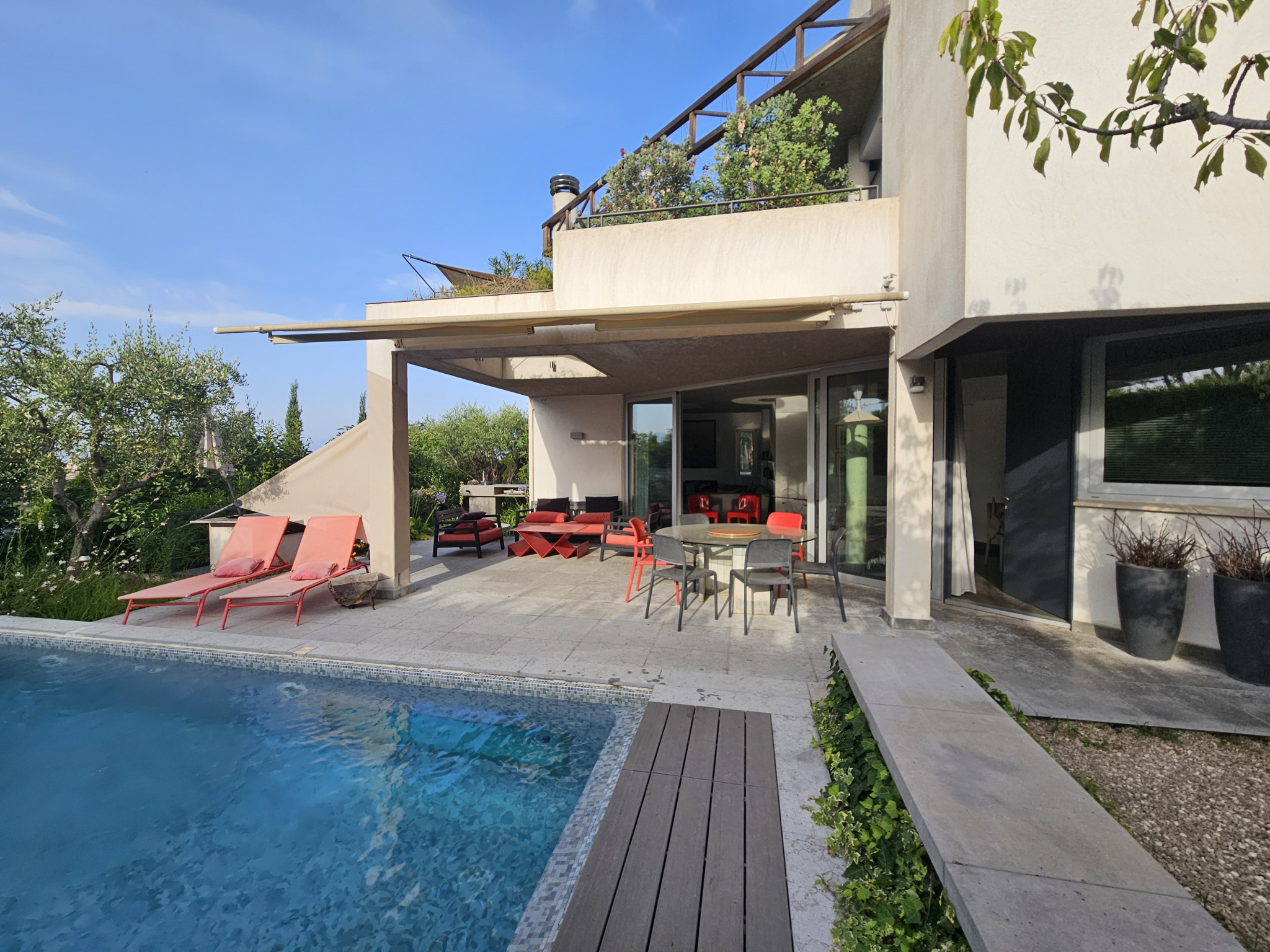 Dans un DOMAINE résidentiel sécurisé de 8 villas, au calme absolu, découvrez cette belle villa contemporaine récente d’environ 276 m² habitables, actuellement aménagée en deux appartements indépendants avec de beaux espaces extérieurs, une piscine, et un toit-terrasse panoramique.