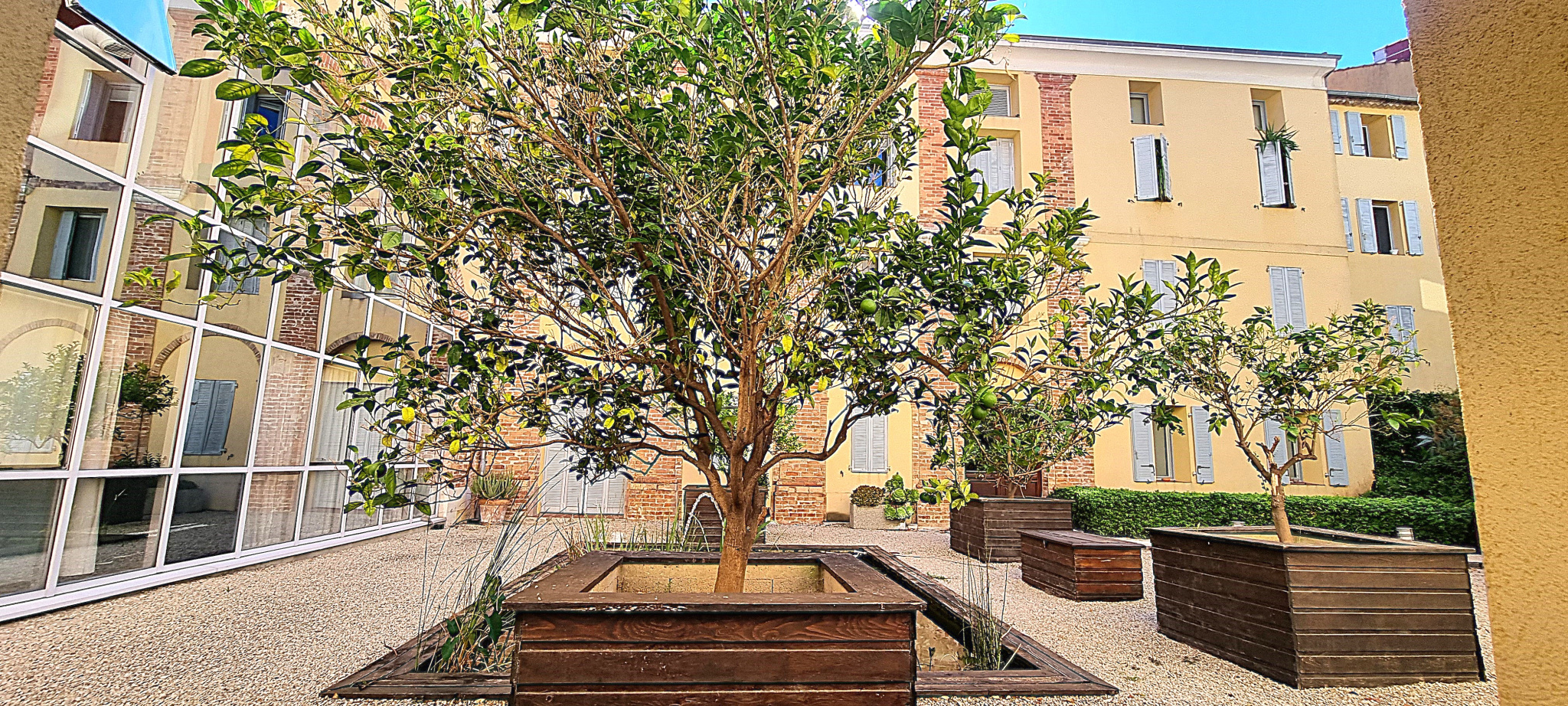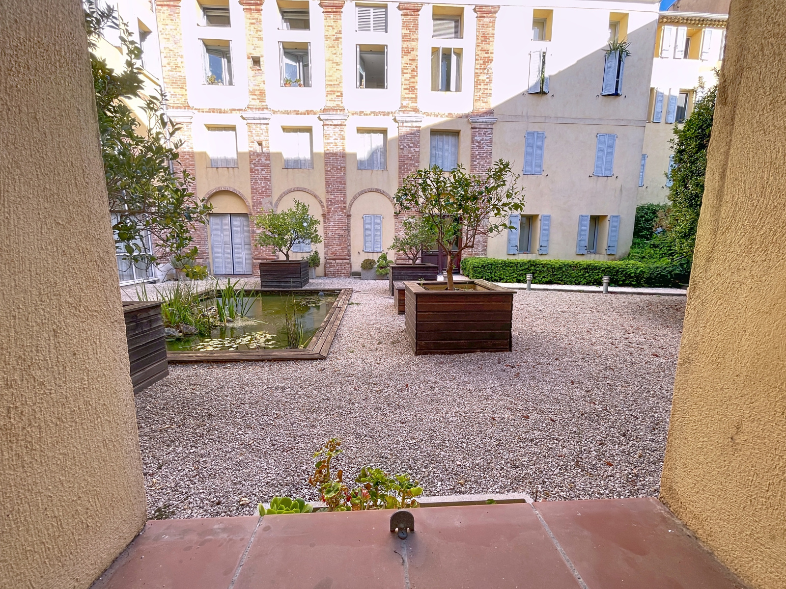 VIEIL ANTIBES, dans copropriété de charme du début des années 2000, joli studio de 27 m2 possédant 3 grandes fenêtres ouvrant sur les jardins de la copropriété.