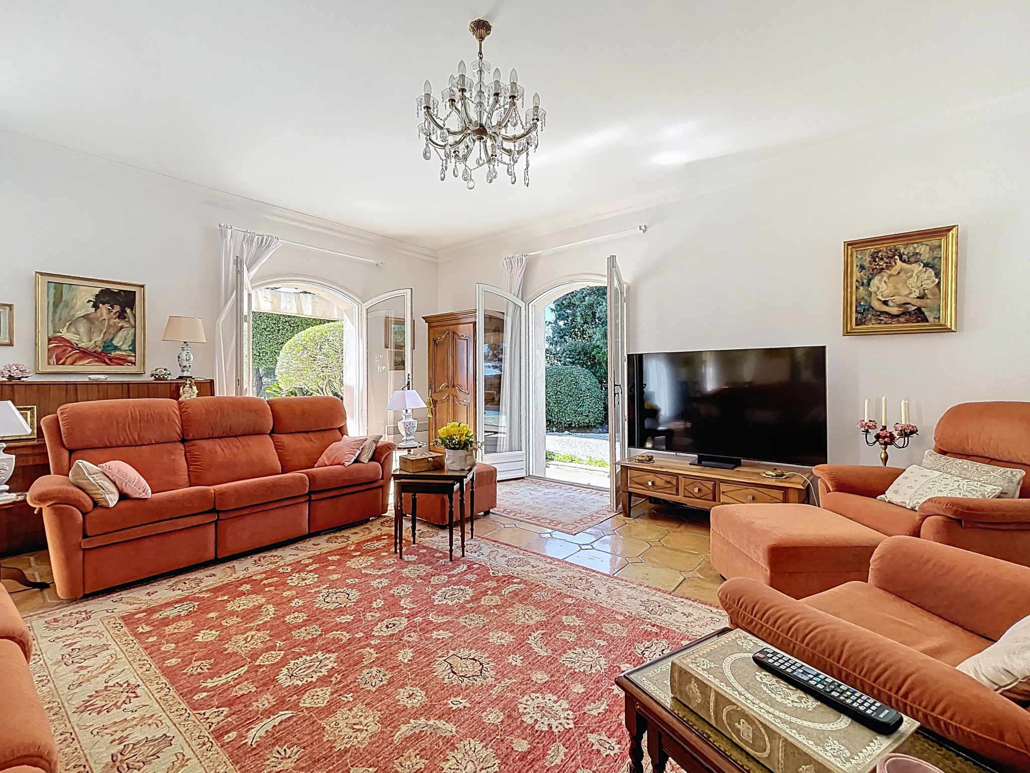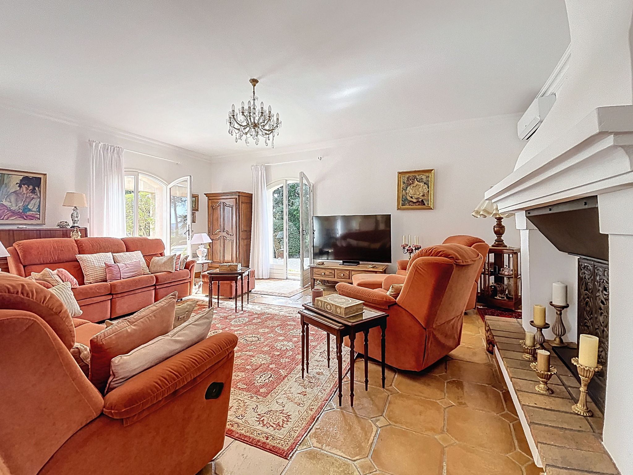 Nichée dans un écrin de verdure, la propriété propose de lumineux espaces de vie avec séjour cheminée ouvert sur l’extérieur, prolongé par une terrasse propice à la convivialité. Dès l’entrée, les volumes généreux et la lumière naturelle créent une atmosphère chaleureuse et raffinée. Le séjour avec cheminée s’ouvre sur un espace salon, tandis que la cuisine s’inscrit en continuité de la salle à manger, dans un esprit de fluidité et de confort.