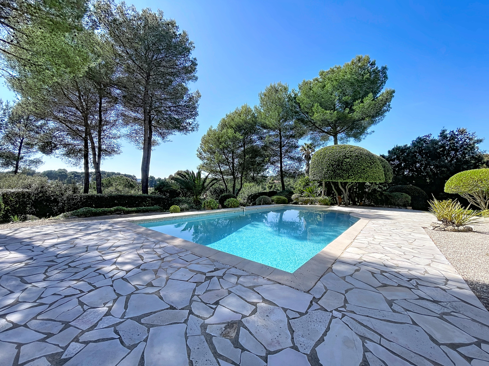 Entre Biot et Valbonne, au cœur d’un domaine résidentiel recherché, à proximité immédiate de Sophia Antipolis et d’écoles de renom, cette élégante villa en position dominante offre un cadre de vie privilégié, alliant calme absolu, environnement préservé et agréable aperçu mer.