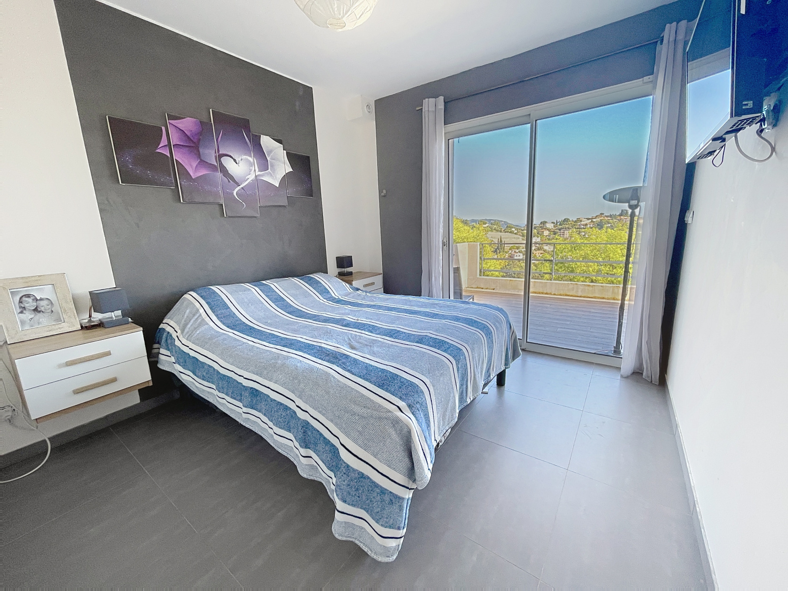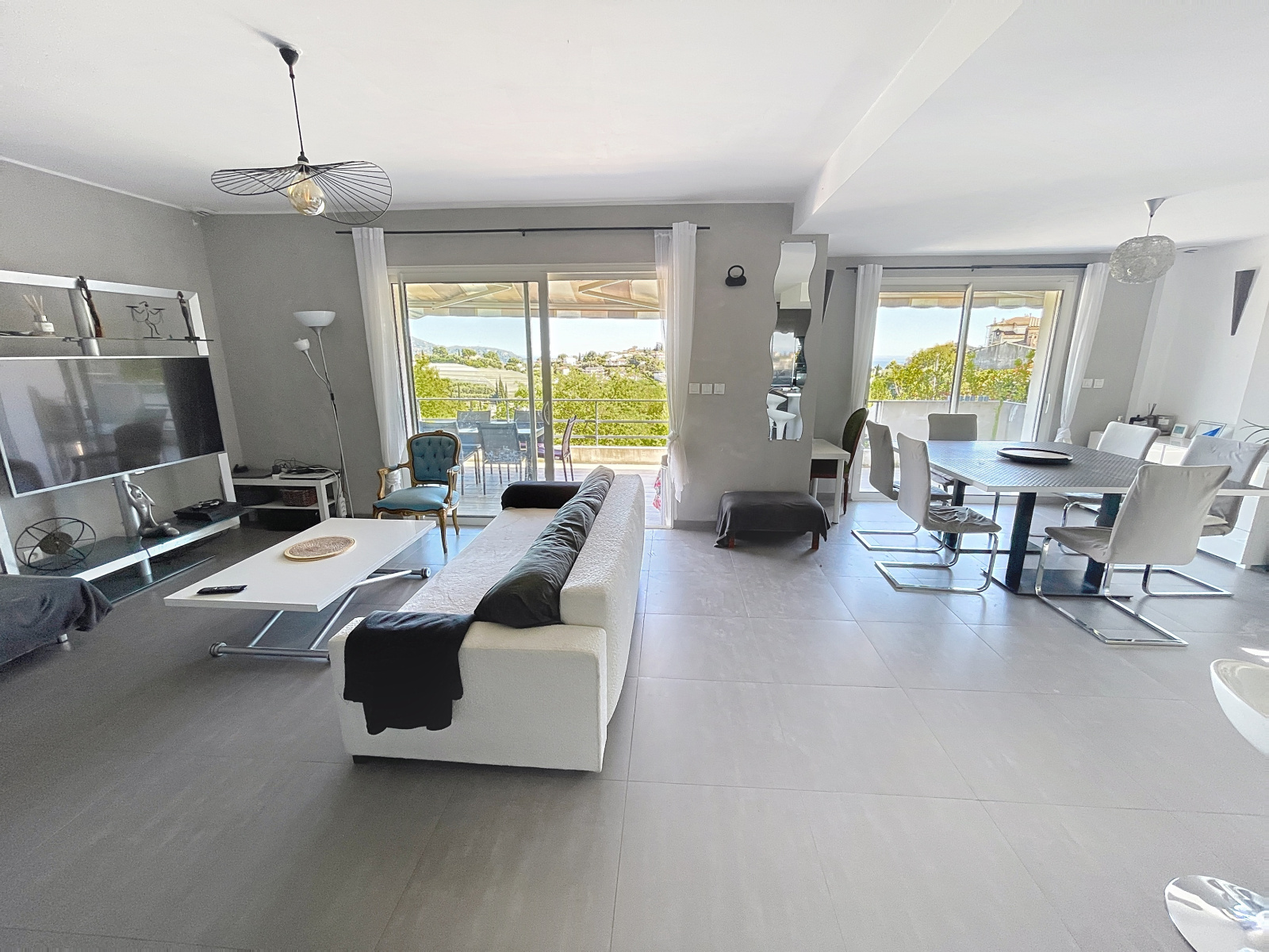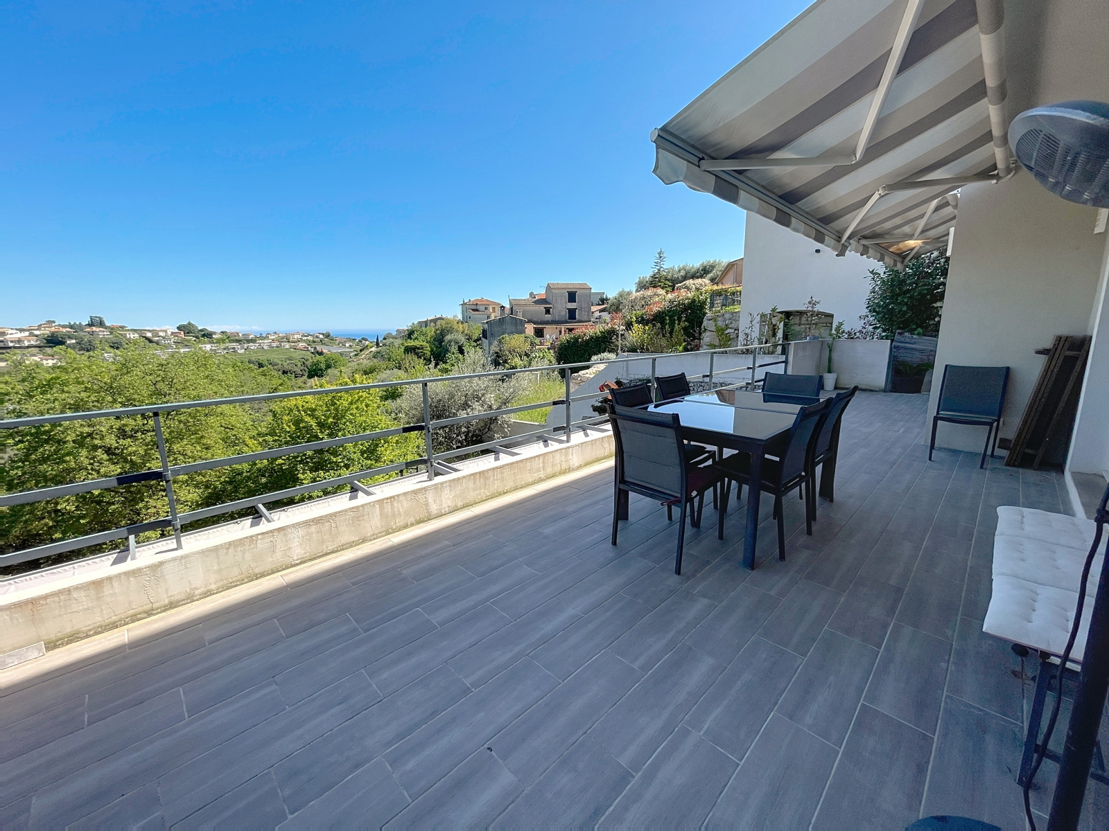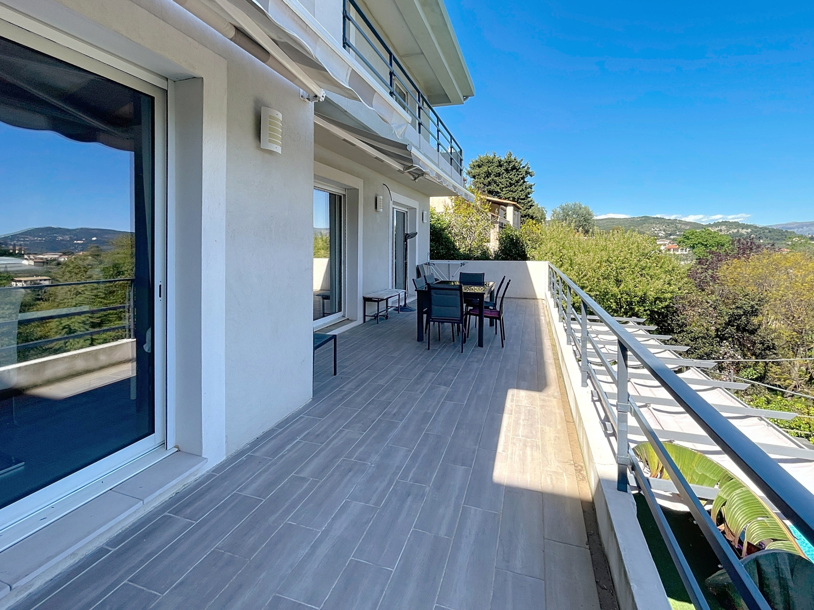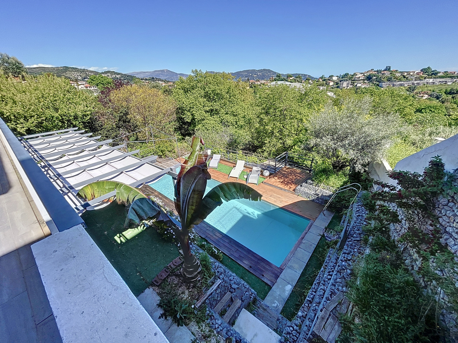 Sur les collines de Nice, quartier Saint Pierre de Feric, villa individuelle contemporaine récente sise sur un terrain de 650m2 en restanques.