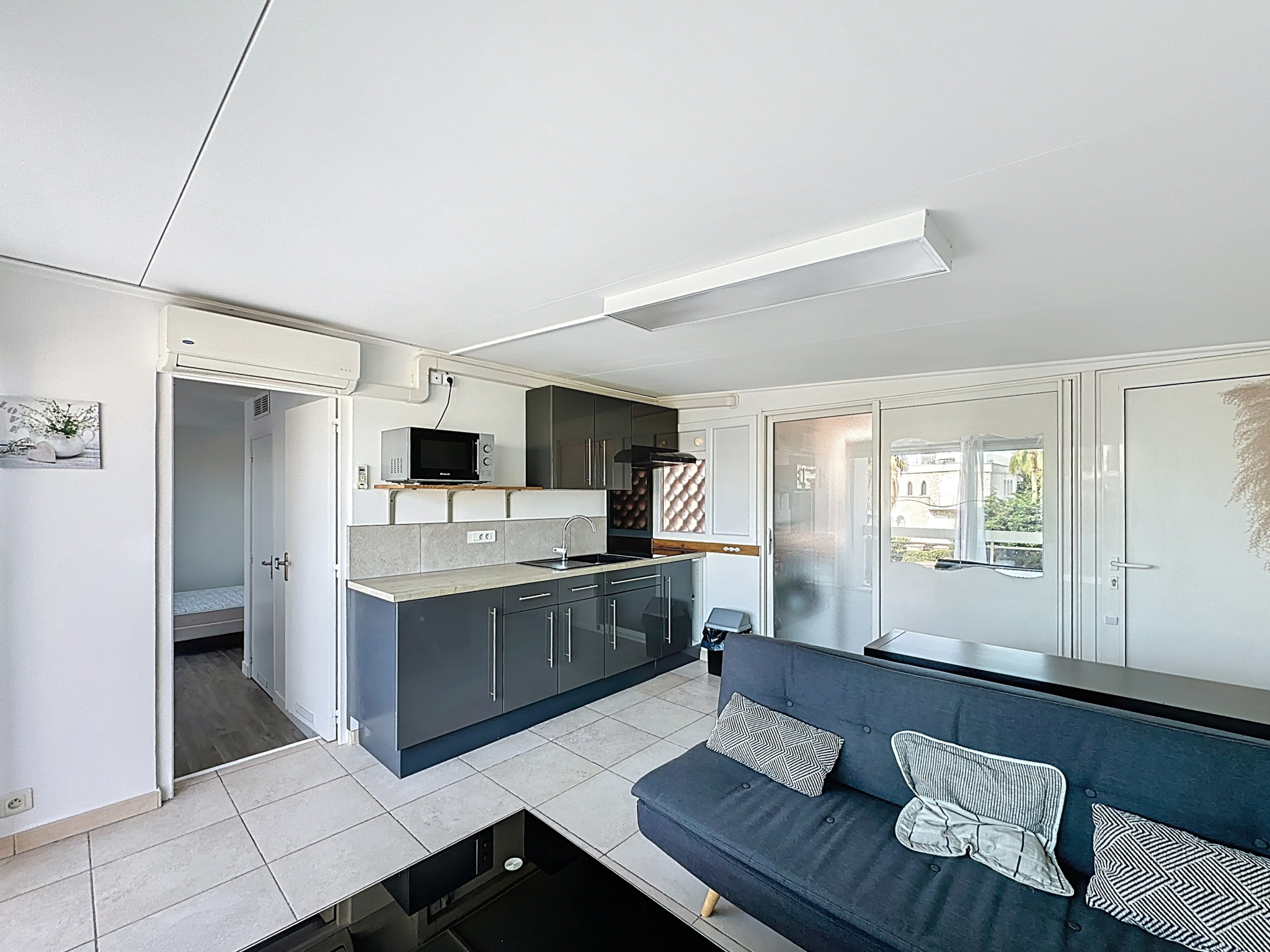 Situé en front de port à Golfe-Juan, à 5 minutes à pied des plages de Golfe juan, ce charmant 2 pièces de 37,8 m² habitables (19 m² loi Carrez) ) a tout pour séduire.